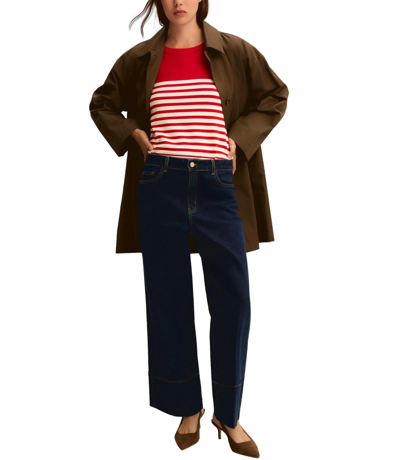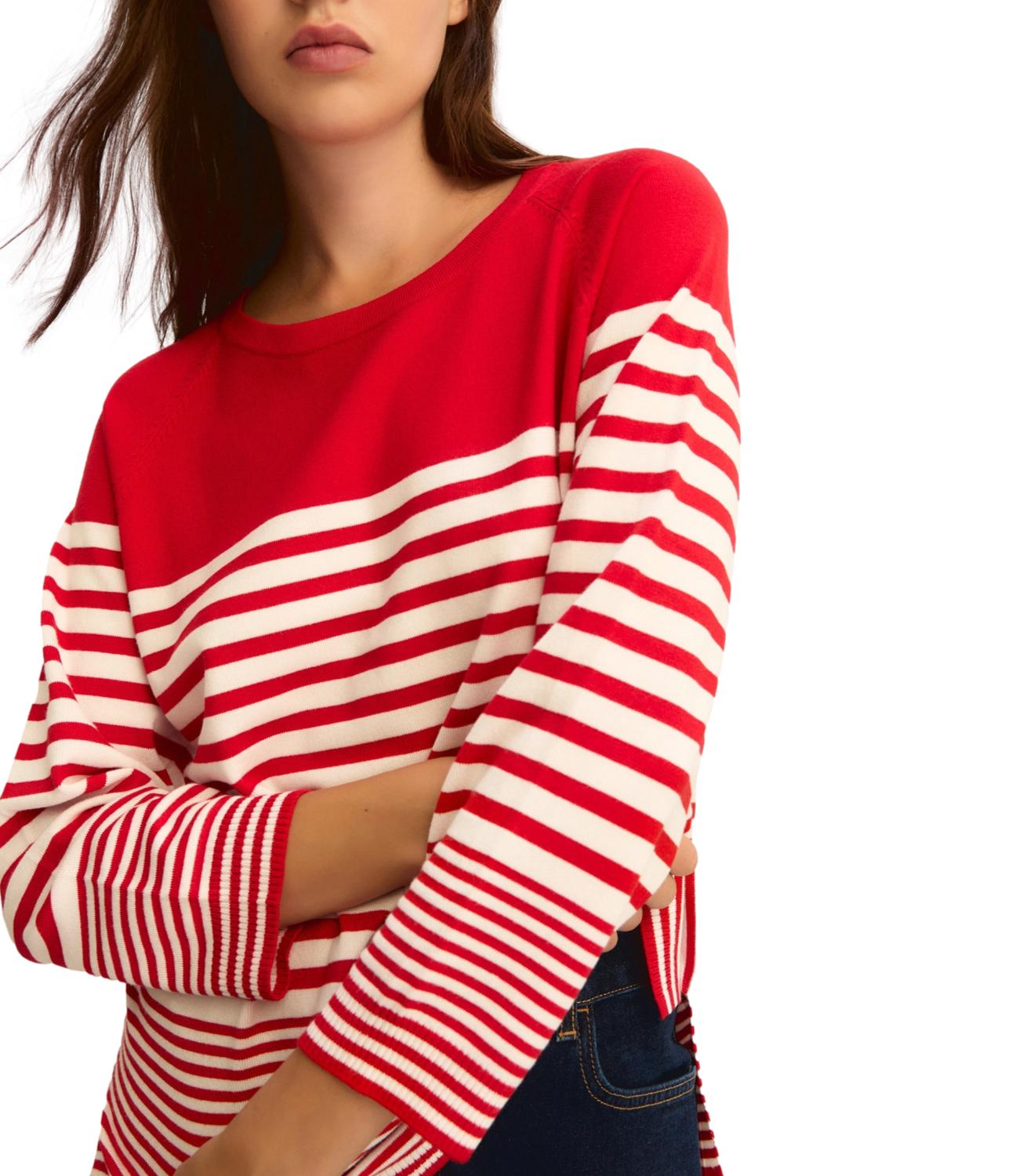 Evoluzione contemporanea della maglia marinière, in una morbida viscosa stretch e con un gioco di righe a contrasto sul busto. Perfetta sempre, chic ogni giorno.