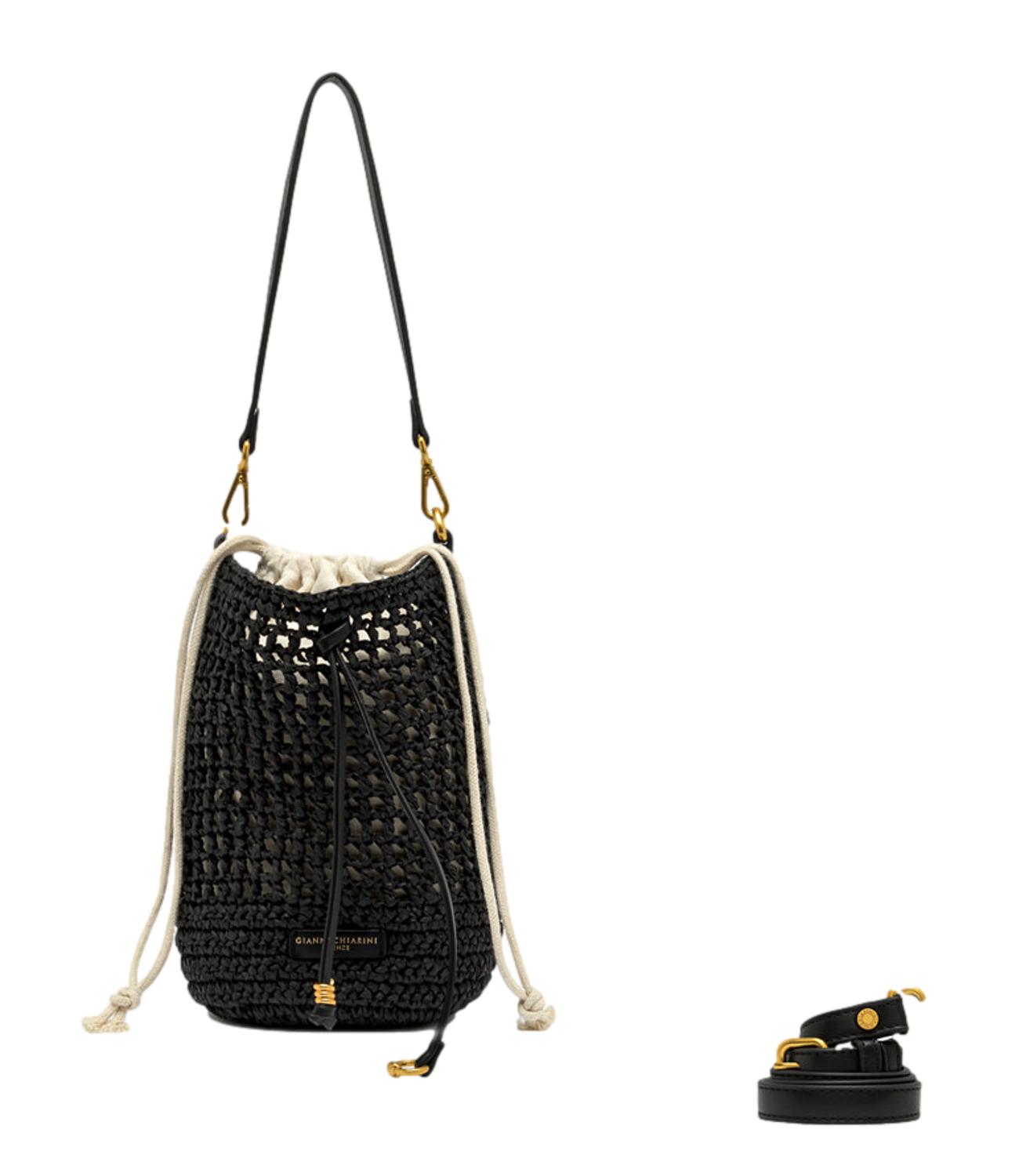 Nefeli è la nuova borsa a secchiello di Gianni Chiarini Firenze, realizzata in paglia crochet, perfetta per affrontare con leggerezza e stile le giornate estive. Presenta una chiusura con coulisse e dettagli in metallo che donano un tocco luminoso al design. Dotata di tracolla pratica e removibile per un utilizzo versatile. Dimensioni: 16x27x16 cm.