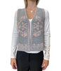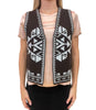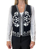 Gilet in lana lavorato jacquard con scollatura a V senza bottoni. Giro allungato con vestibilità quadrata.