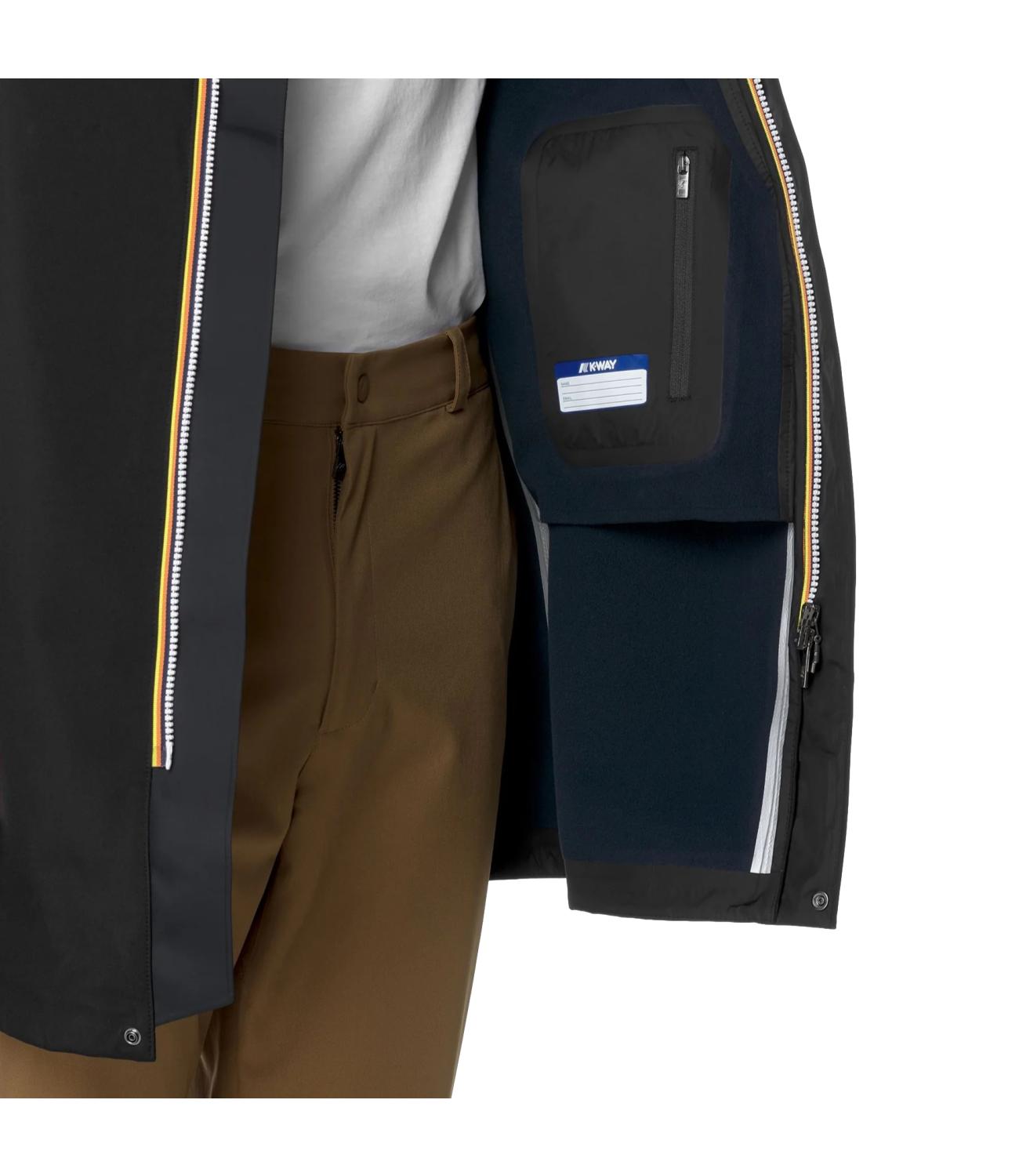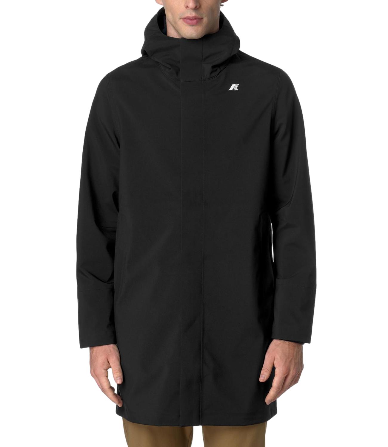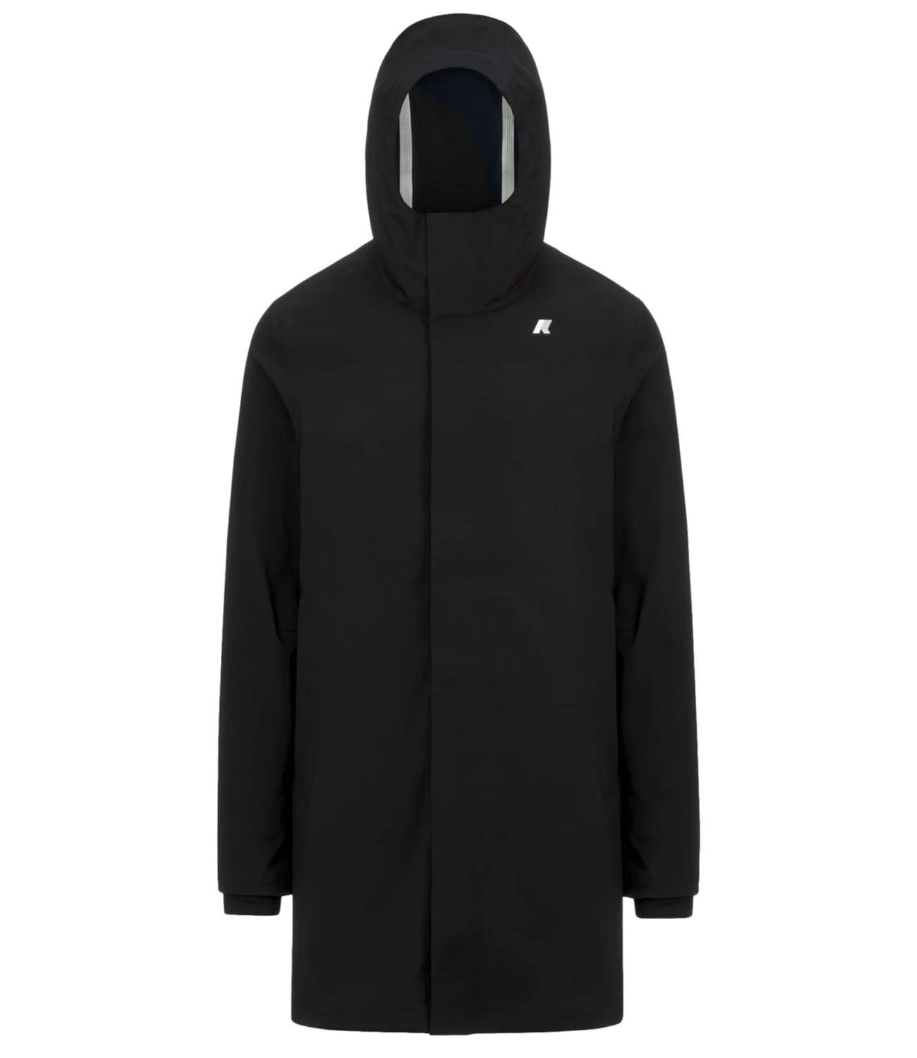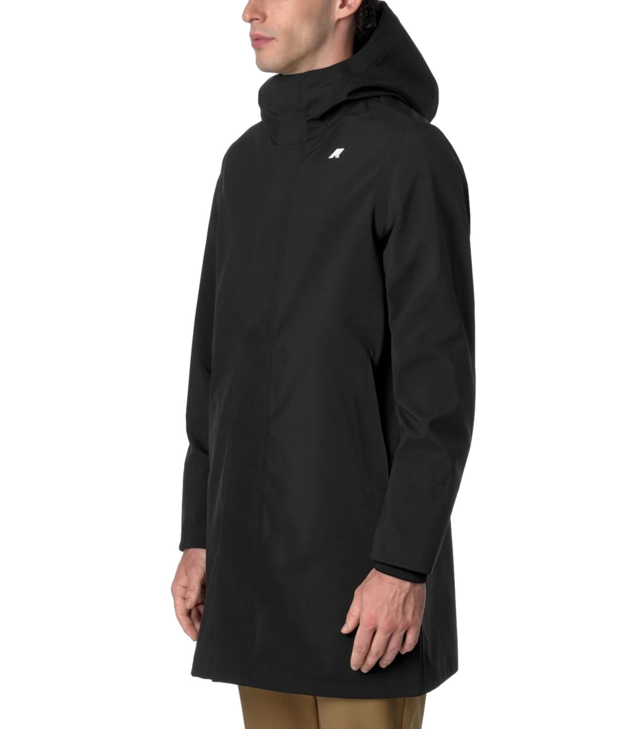K-way giacca Thomas Bonded black nero uomo lungo con pile interno, cappuccio, e tessuto idrorepellente