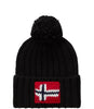 Cappello Napapijri nero in lana a coste con pon pon e bandiera Norvegia, cappello beanie unisex uomo donna caldissimo