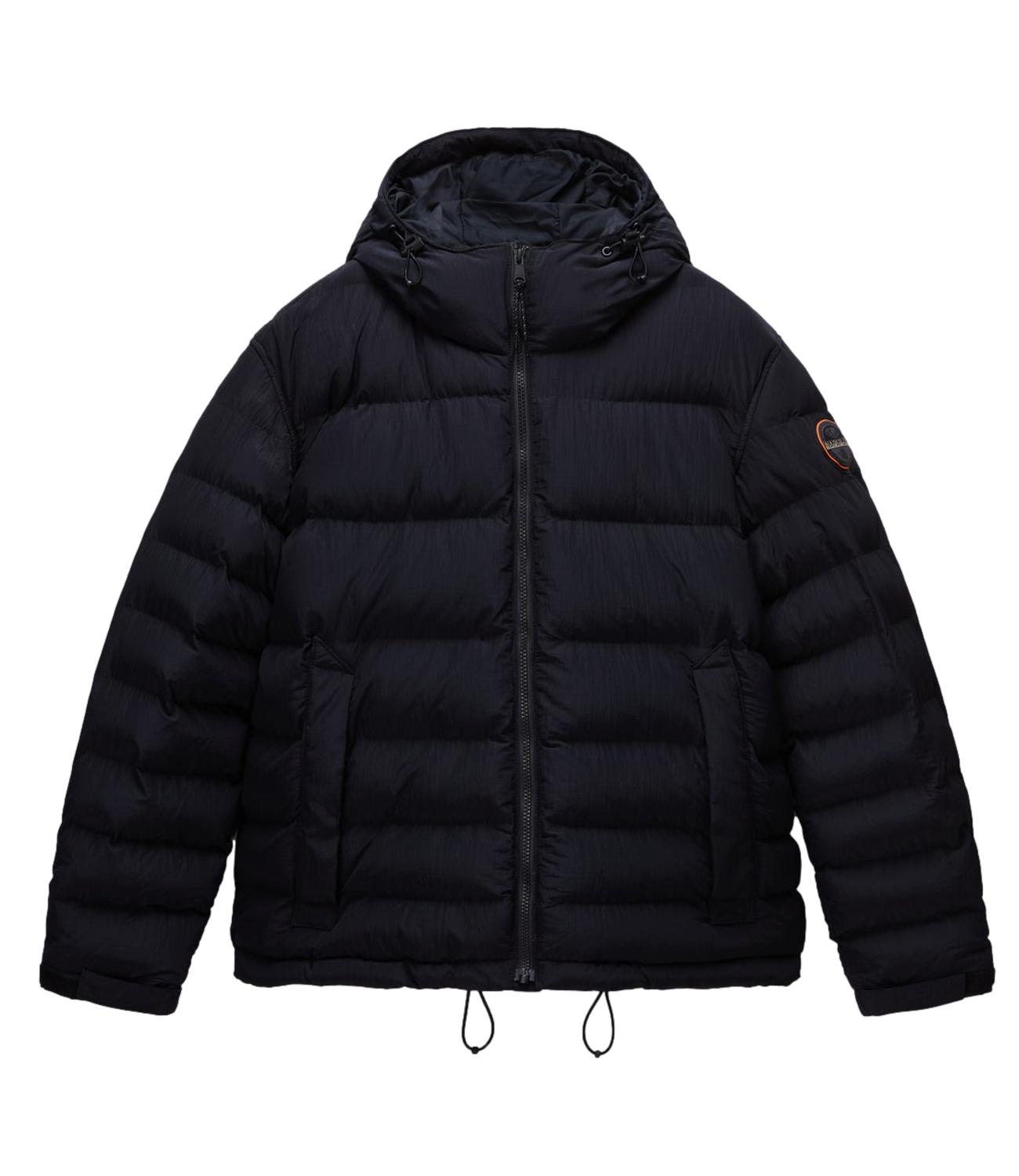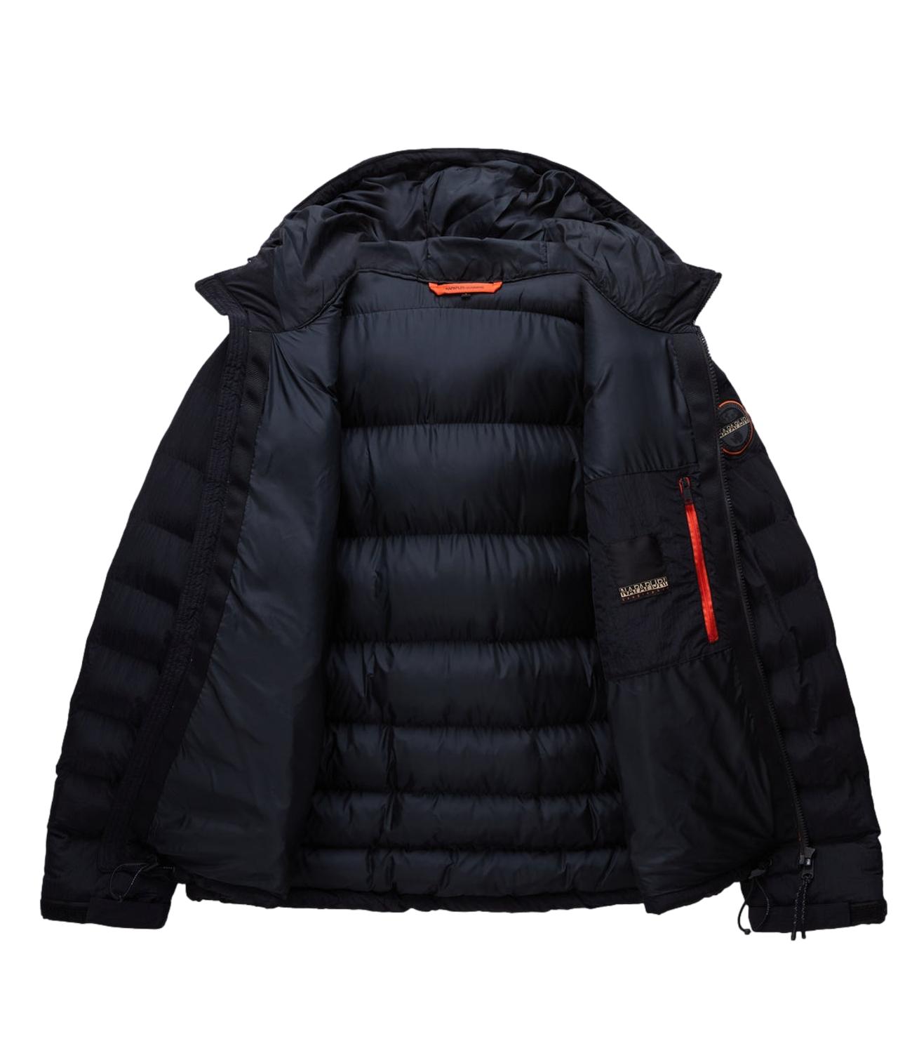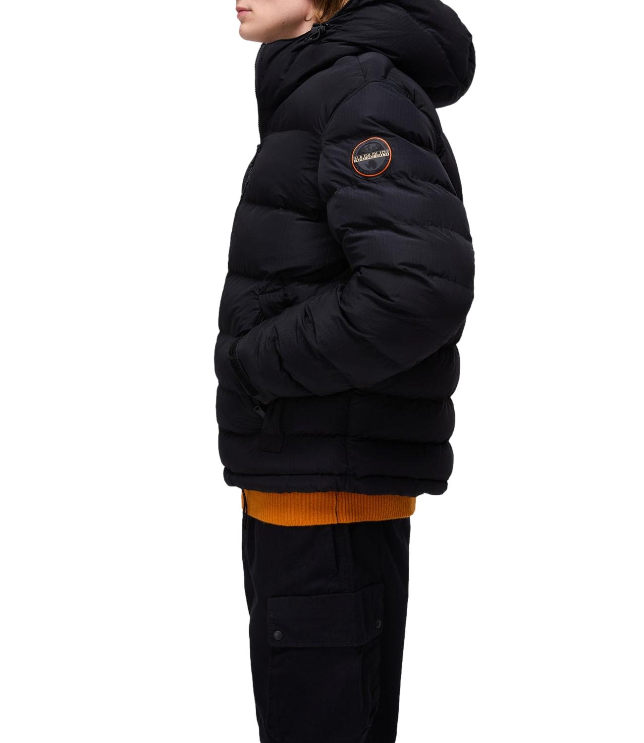 Napapijri Piumino A - Terez nero con cappuccio e stratificazione a onda, piumino con tessuto ripstop