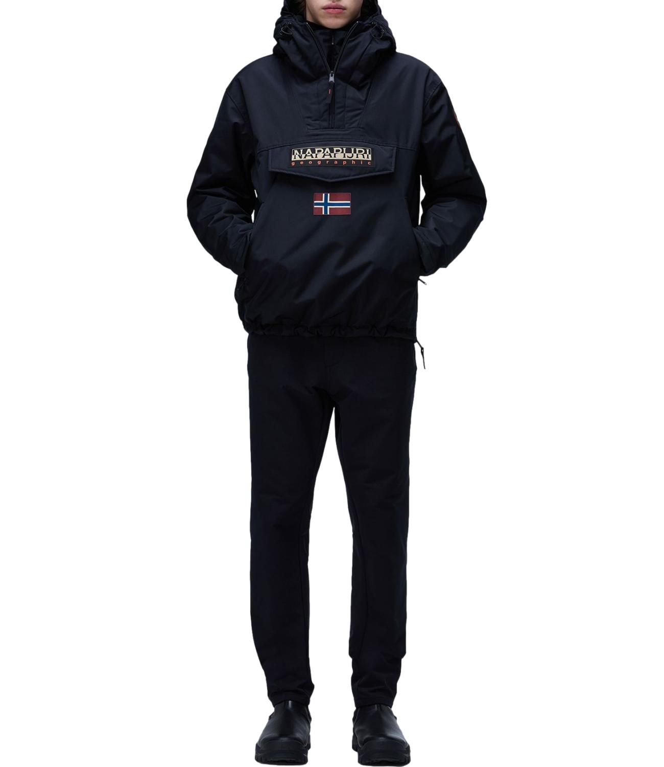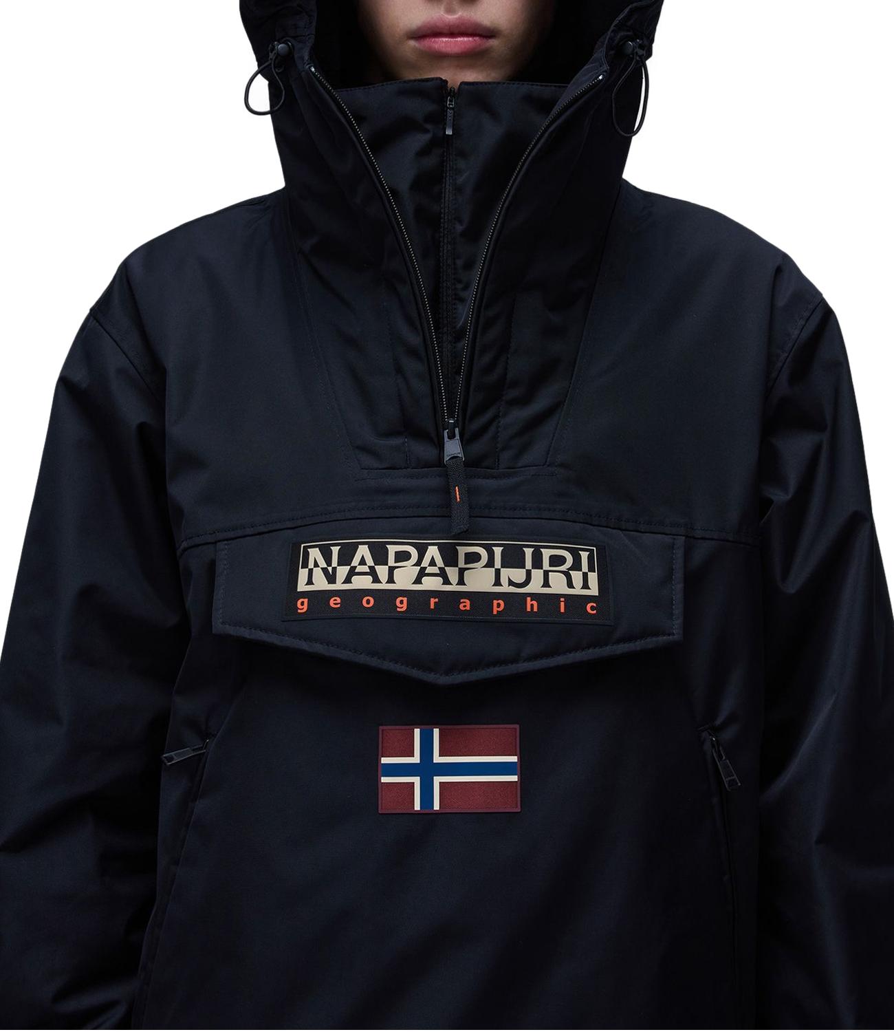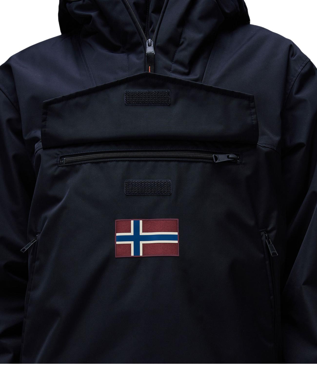 Il suo taglio anorak, con cappuccio regolabile e ampia tasca frontale con patta e zip, assicura praticità e comfort quotidiano. I dettagli distintivi — come il logo Napapijri, la bandiera norvegese sul petto e la patch sulla manica — ne sottolineano l'identità autentica.
