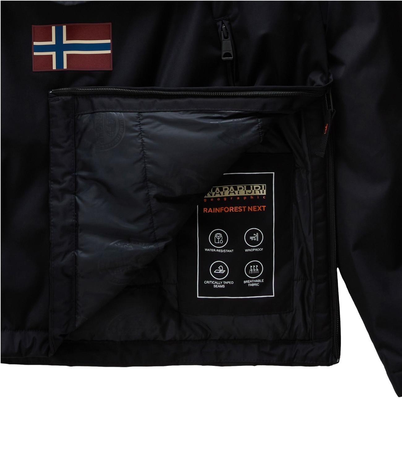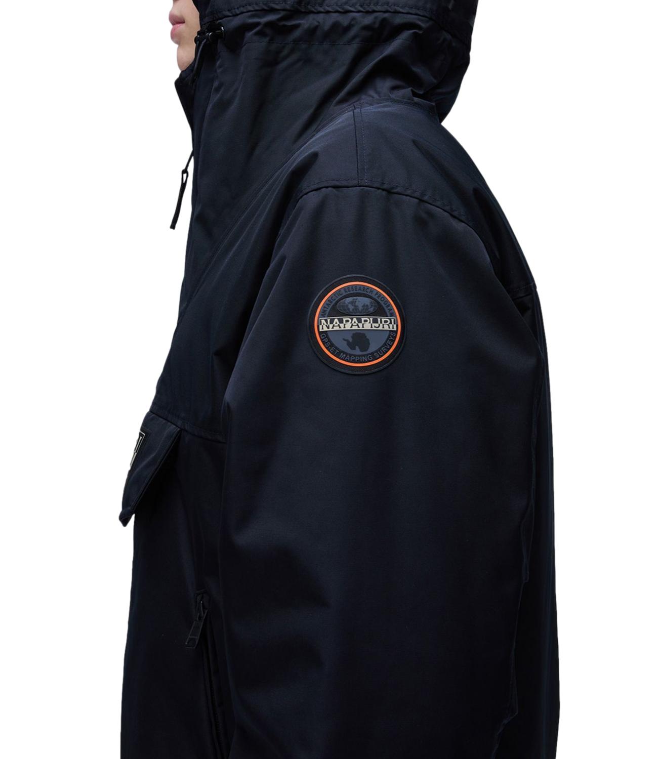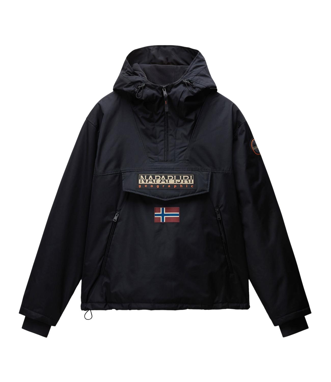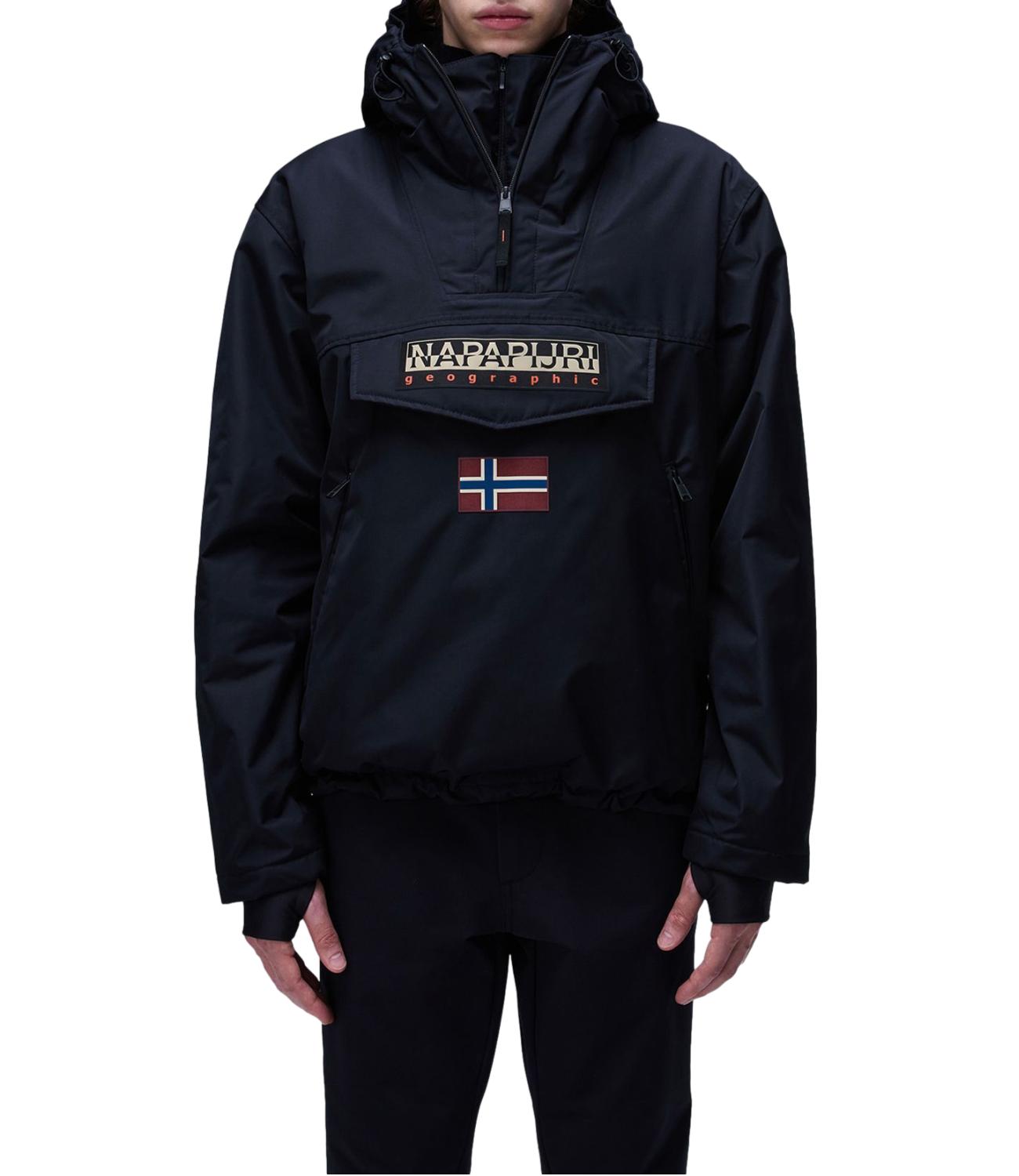 Il suo taglio anorak, con cappuccio regolabile e ampia tasca frontale con patta e zip, assicura praticità e comfort quotidiano. I dettagli distintivi — come il logo Napapijri, la bandiera norvegese sul petto e la patch sulla manica — ne sottolineano l'identità autentica.